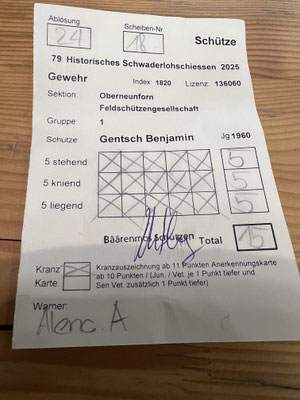 Herzliche Gratulation an Beni Gentsch zum Erreichen des Ausstichs am Schwaderloh-Schiessen! Zum Sieg hat es nicht gereicht, aber ein Achtungserfolg sind die 2 von 5 Treffern allemal!